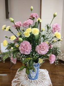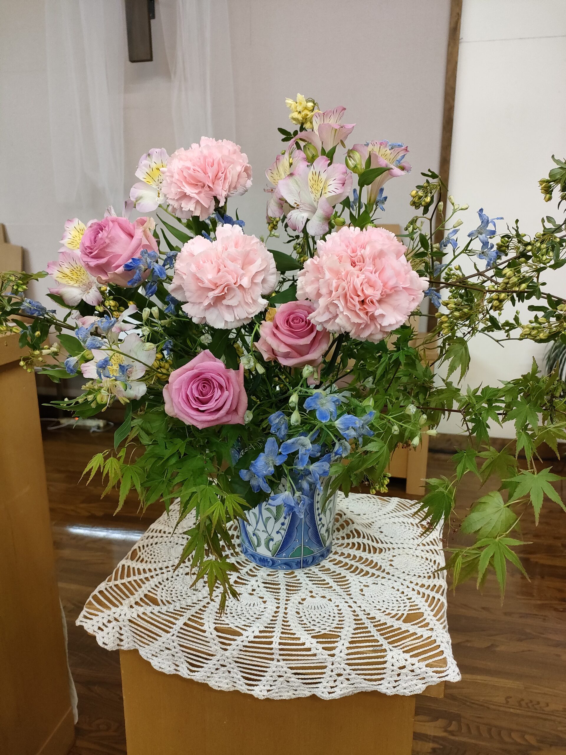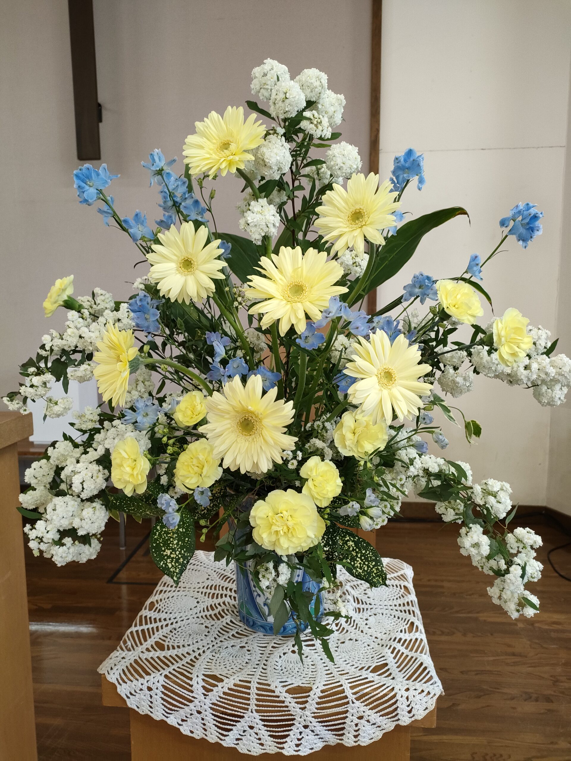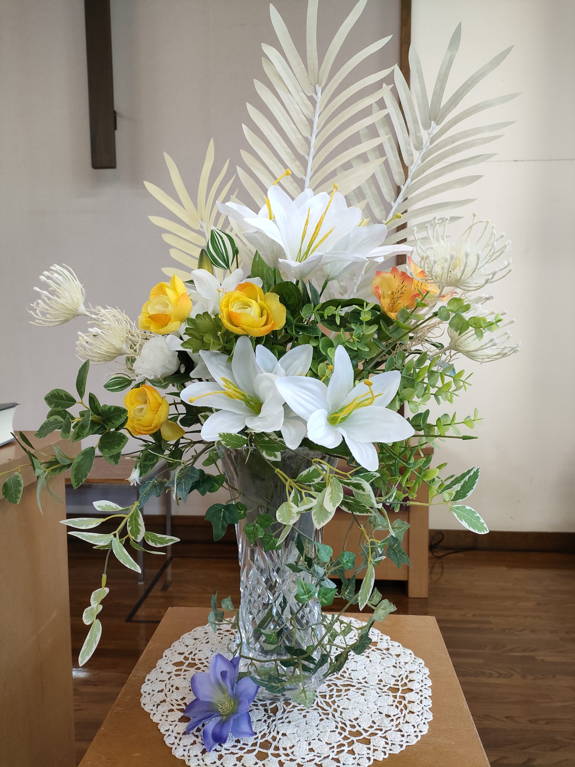 毎週教会員の方が講壇に飾るお花を生けてくださっています。