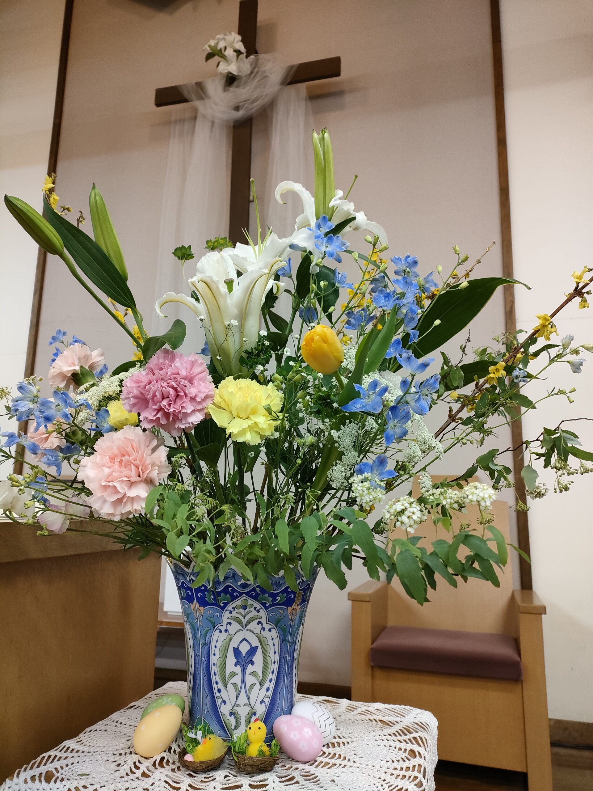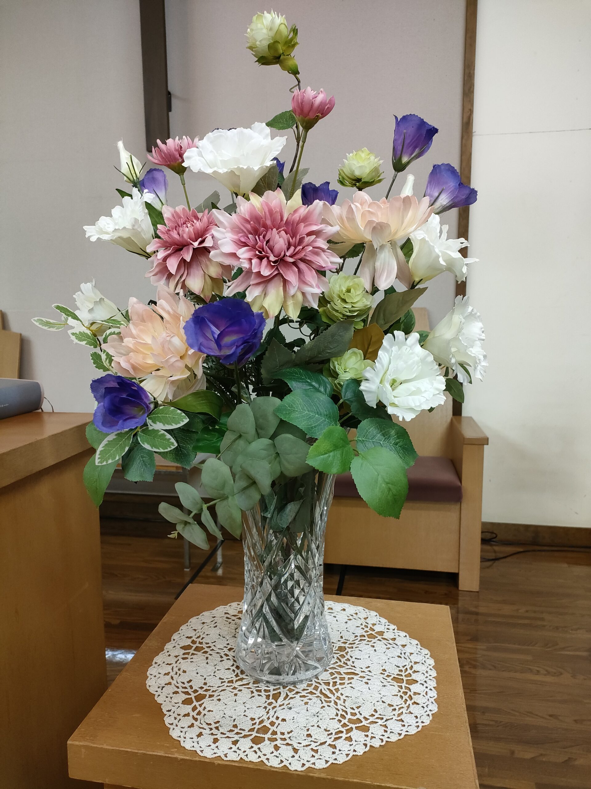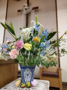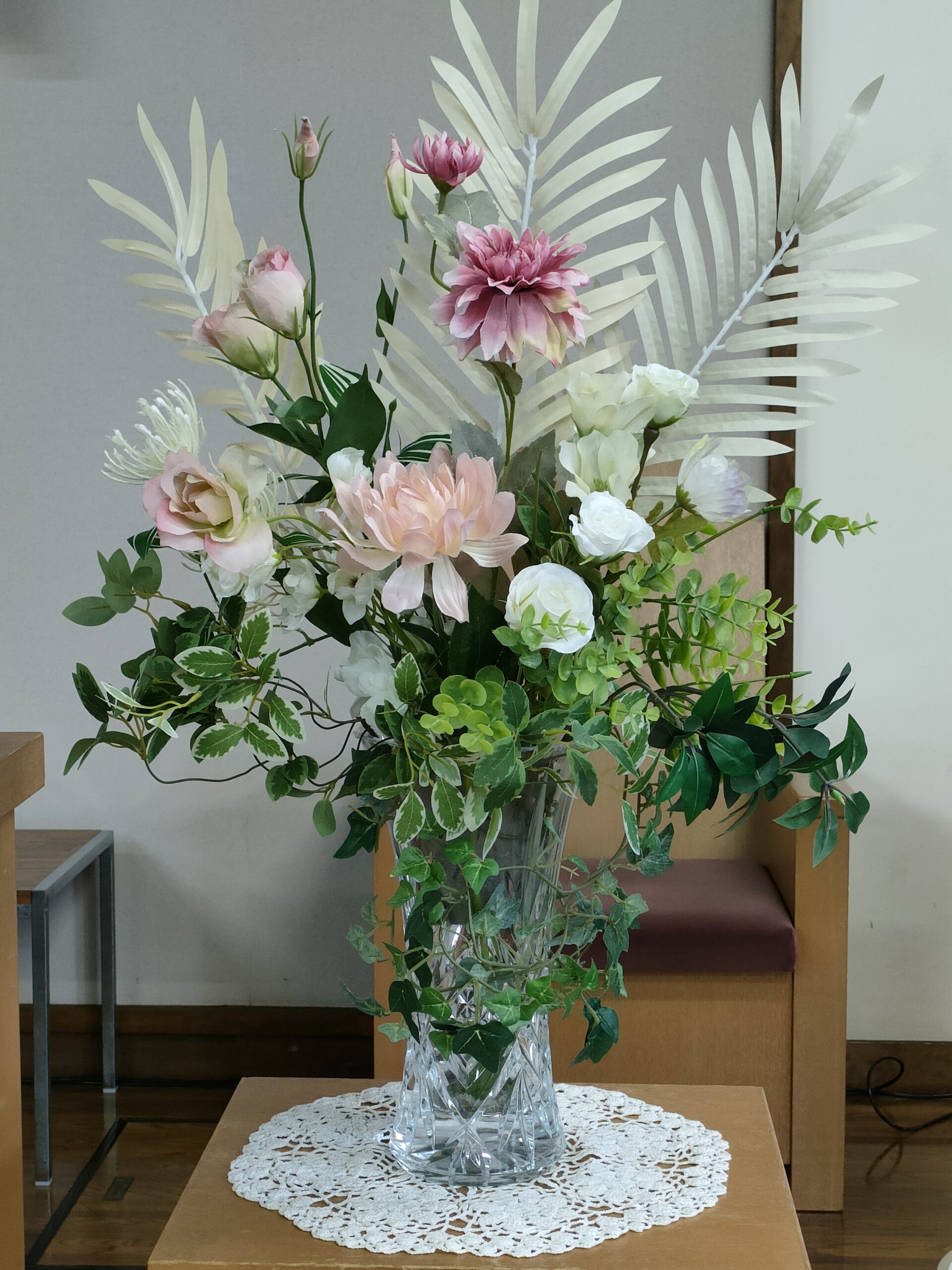 毎週教会員の方が講壇に飾るお花を生けてくださっています。
