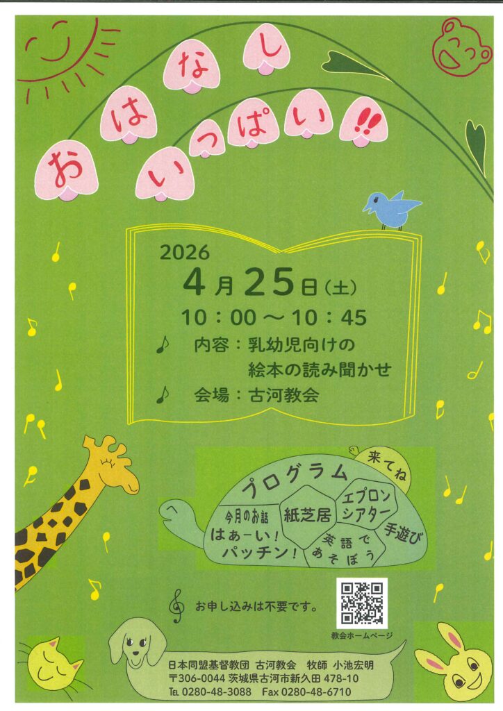 毎月第四土曜日は絵本読み聞かせの会 おはなしいっぱい‼を開催しています。絵本、紙芝居、パネルシアター、手遊びなどで楽しくすごしましょう。入場無料です。乳幼児が対象ですが、そのごきょうだいなども歓迎いたします。