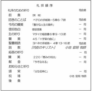 • 今週の礼拝プログラム2025年10月5日10月5日の礼拝プログラム